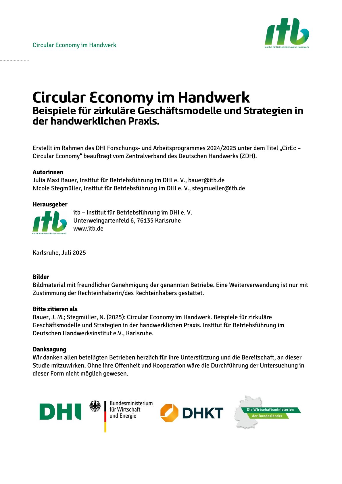 Danke an itb- Institut für Betriebsführung im Handwerk für den tollen Bericht.